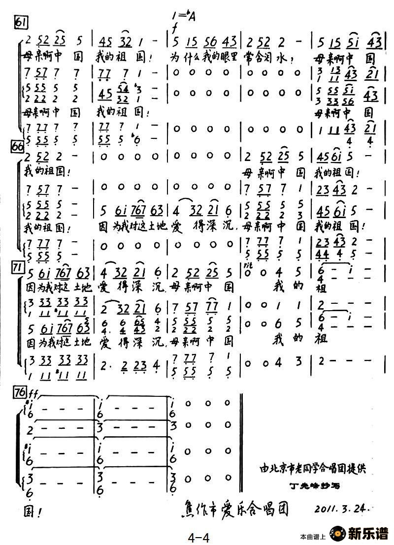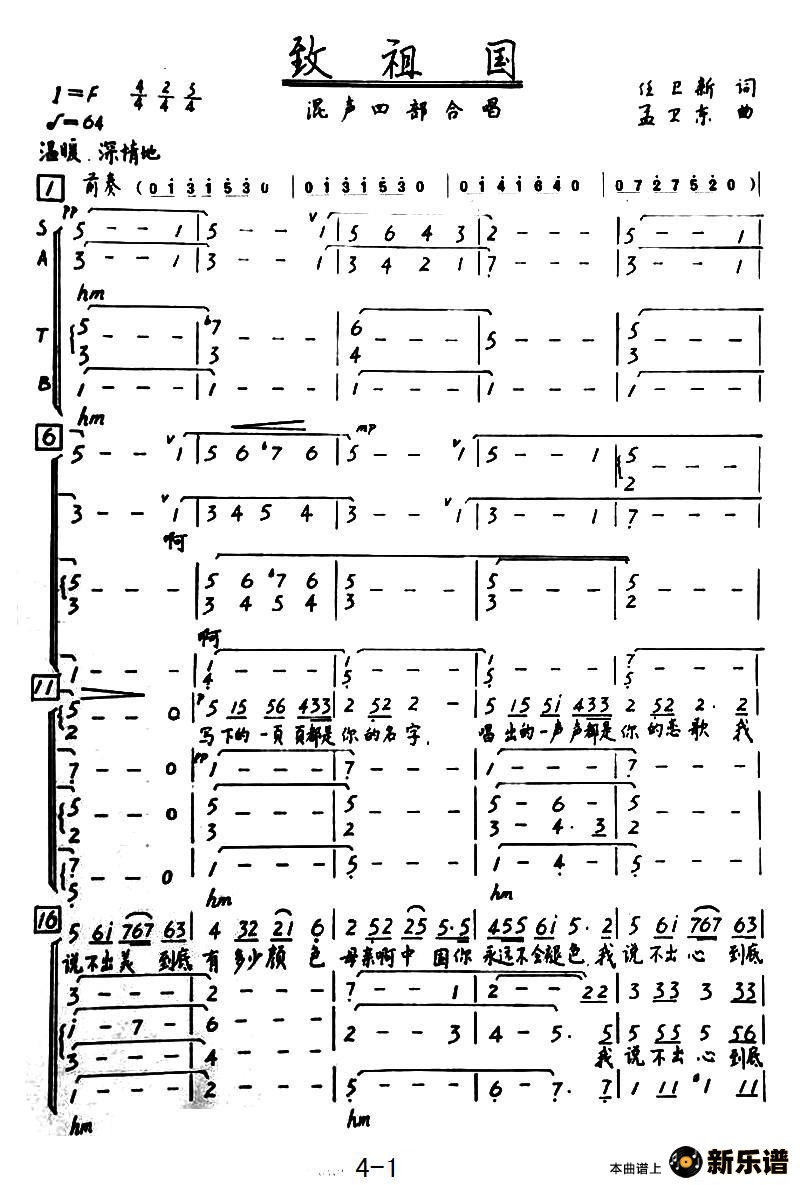 焦作市爱乐合唱团演唱的致祖国(混声合唱)歌词,致祖国(混声合唱)简谱.