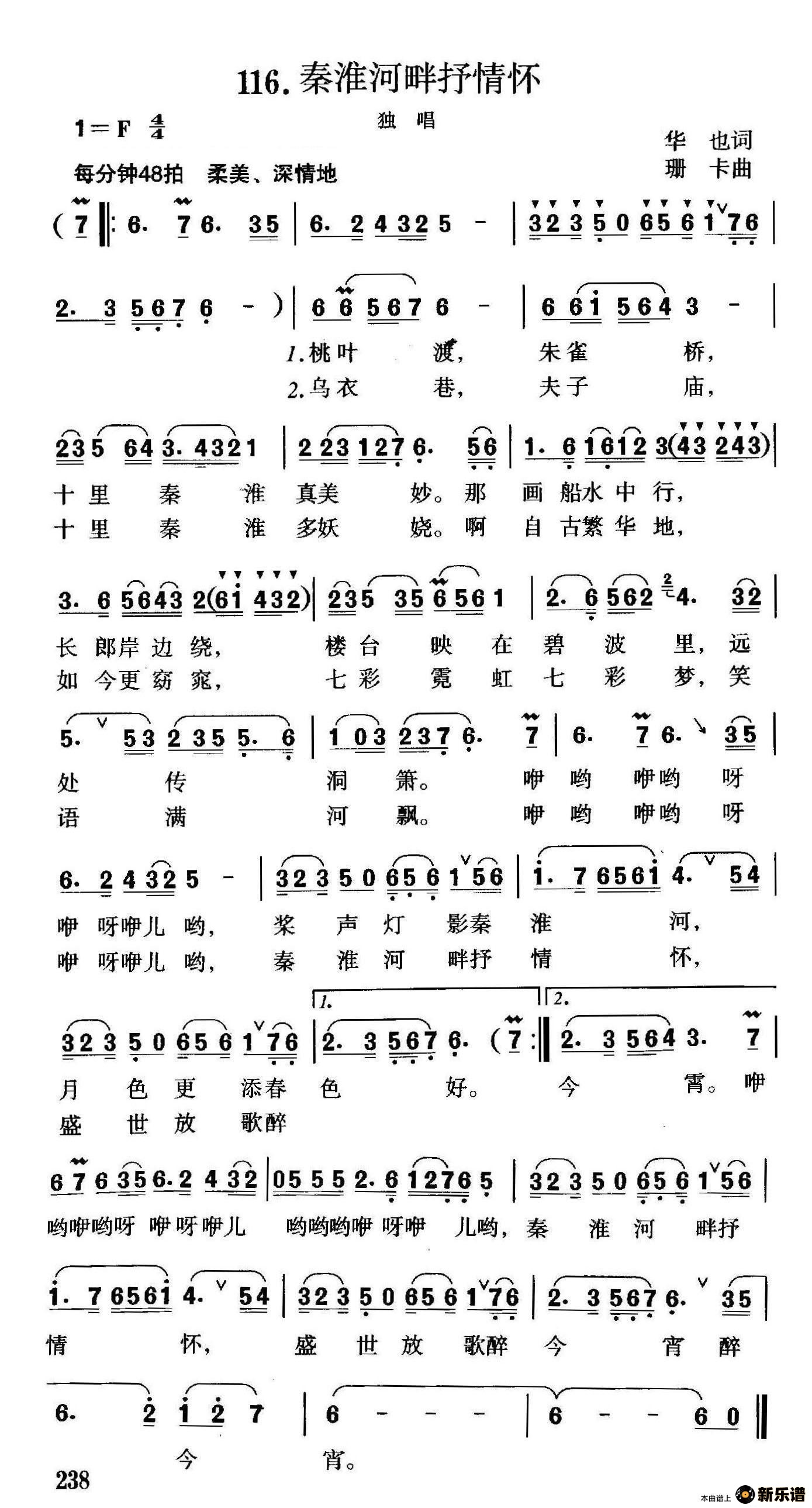 演唱的秦淮河畔抒情怀歌词,秦淮河畔抒情怀简谱.
