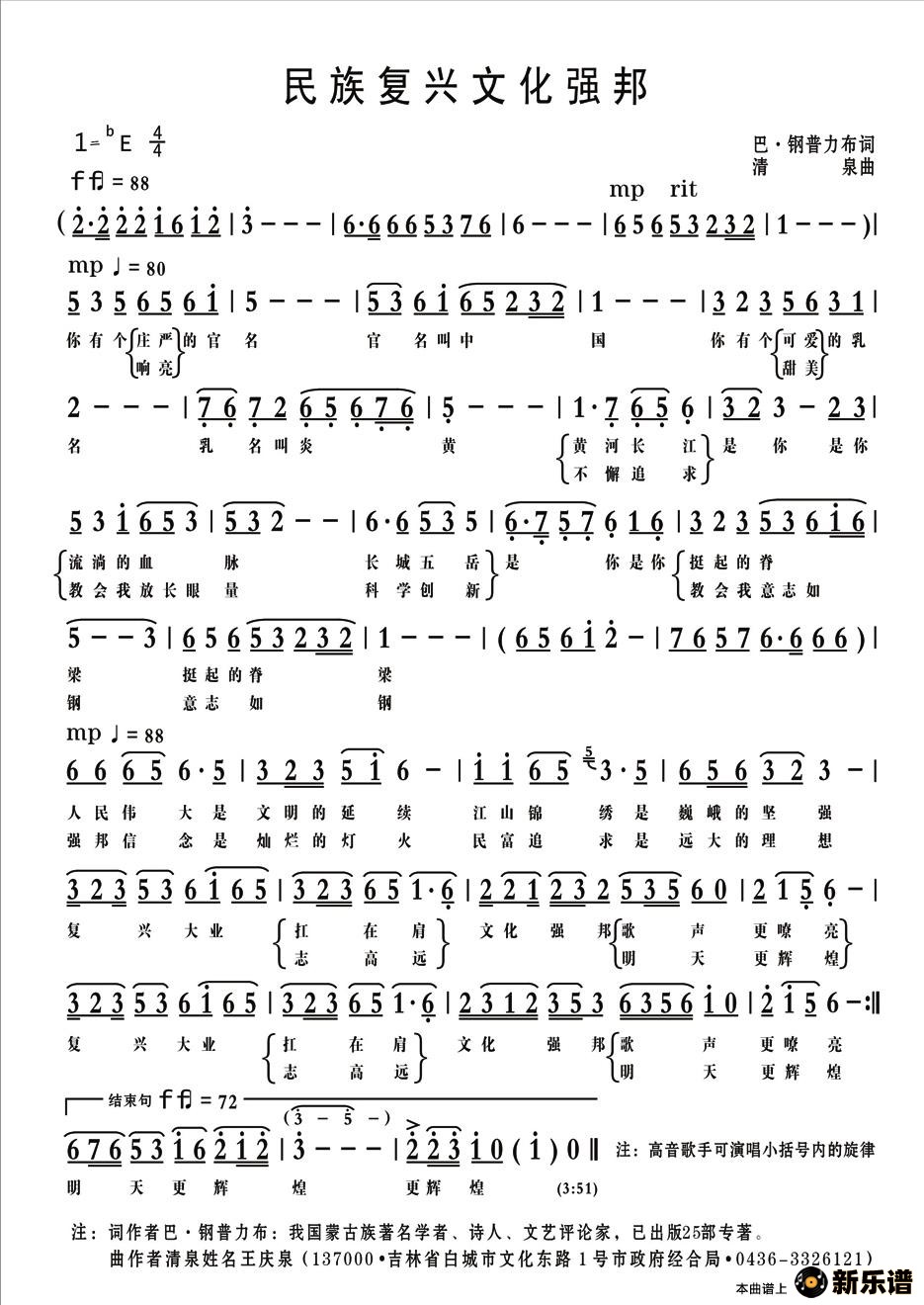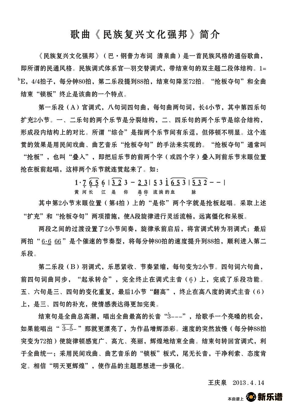 演唱的民族复兴文化强邦歌词,民族复兴文化强邦简谱.