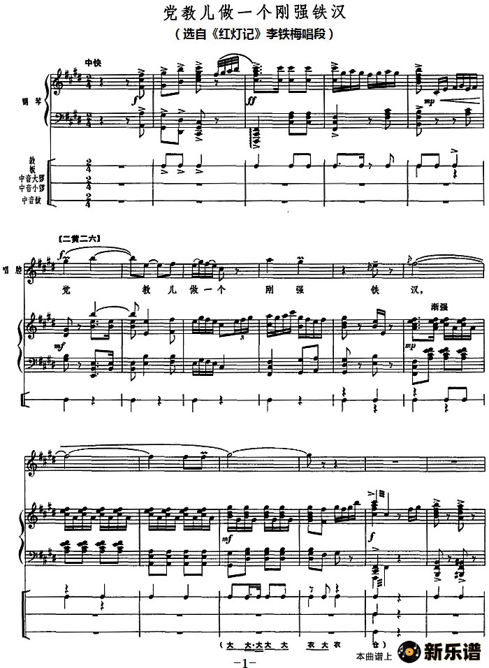 演唱的钢琴伴唱京剧《红灯记》:党教儿做一个刚强铁汉(李玉和唱段)歌词,钢琴伴唱京剧《红灯记》:党教儿做一个刚强铁汉(李玉和唱段)简谱.