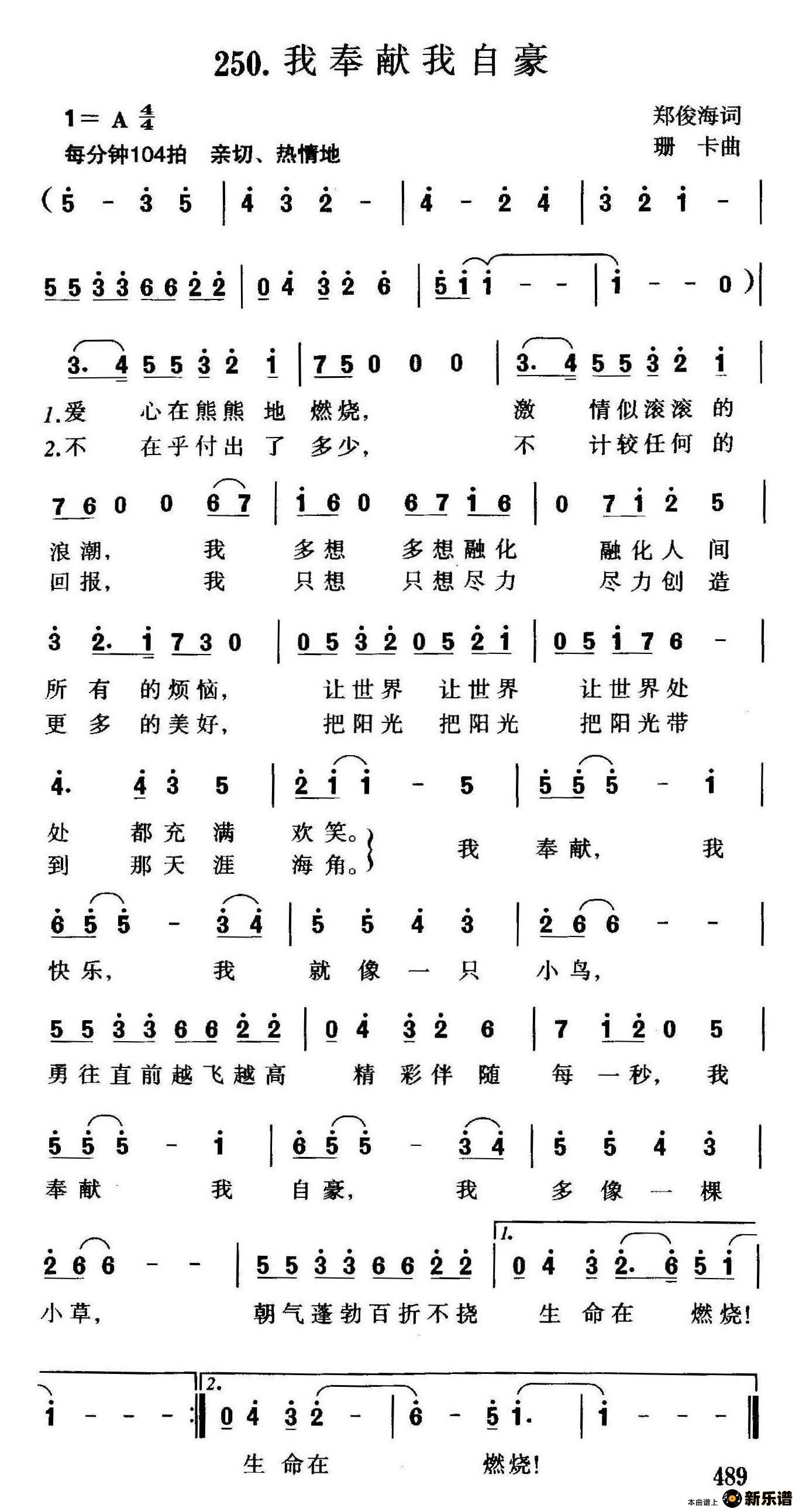 演唱的我奉献我自豪歌词,我奉献我自豪简谱.
