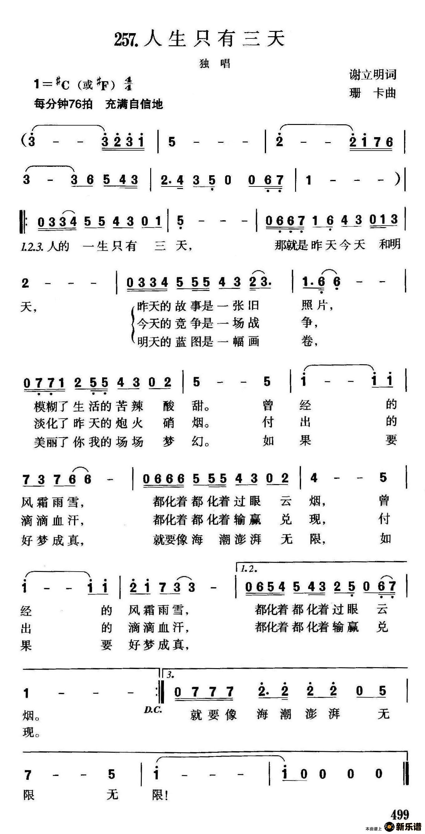 演唱的人生只有三天歌词,人生只有三天简谱.