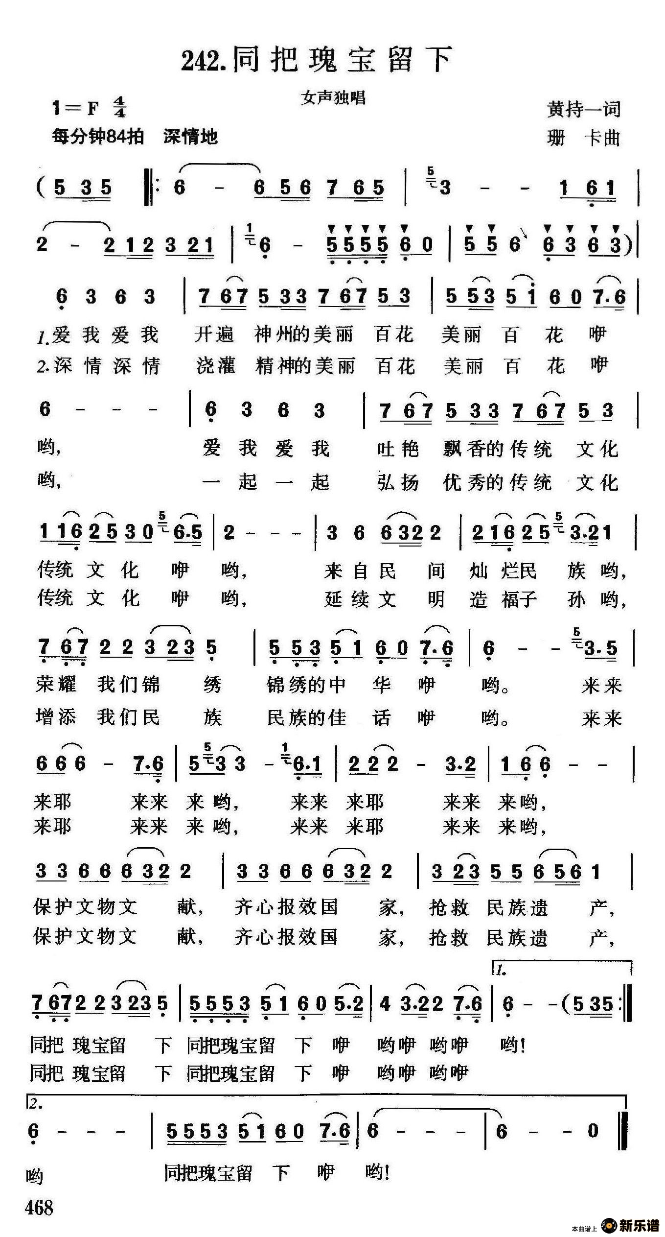 演唱的同把瑰宝留下歌词,同把瑰宝留下简谱.