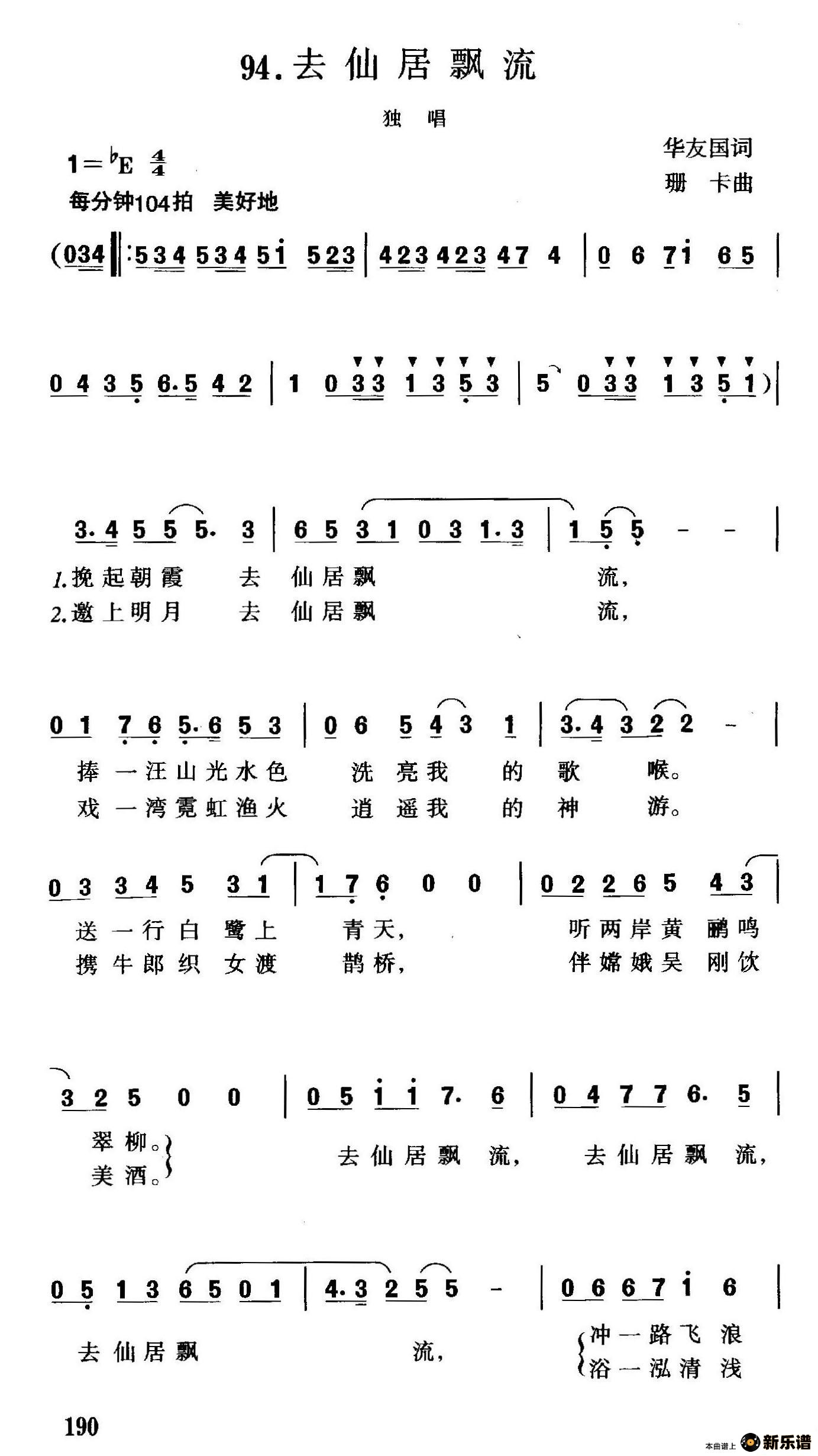 演唱的去仙居飘流歌词,去仙居飘流简谱.