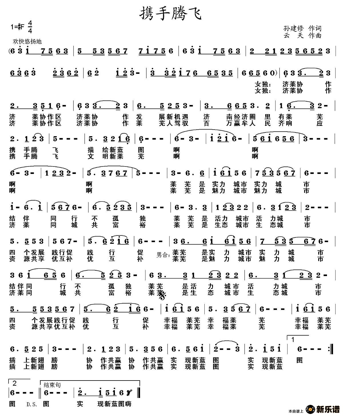 演唱的携手腾飞歌词,携手腾飞简谱.