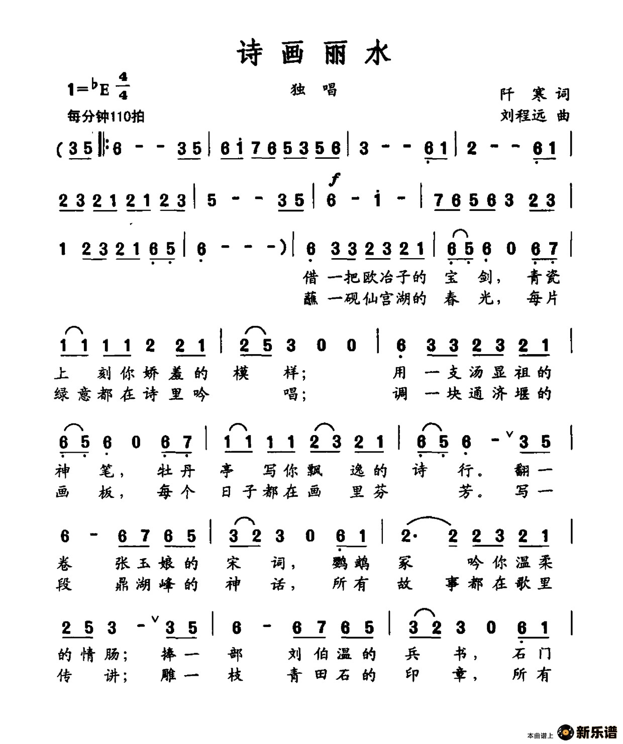 演唱的诗画丽水歌词,诗画丽水简谱.