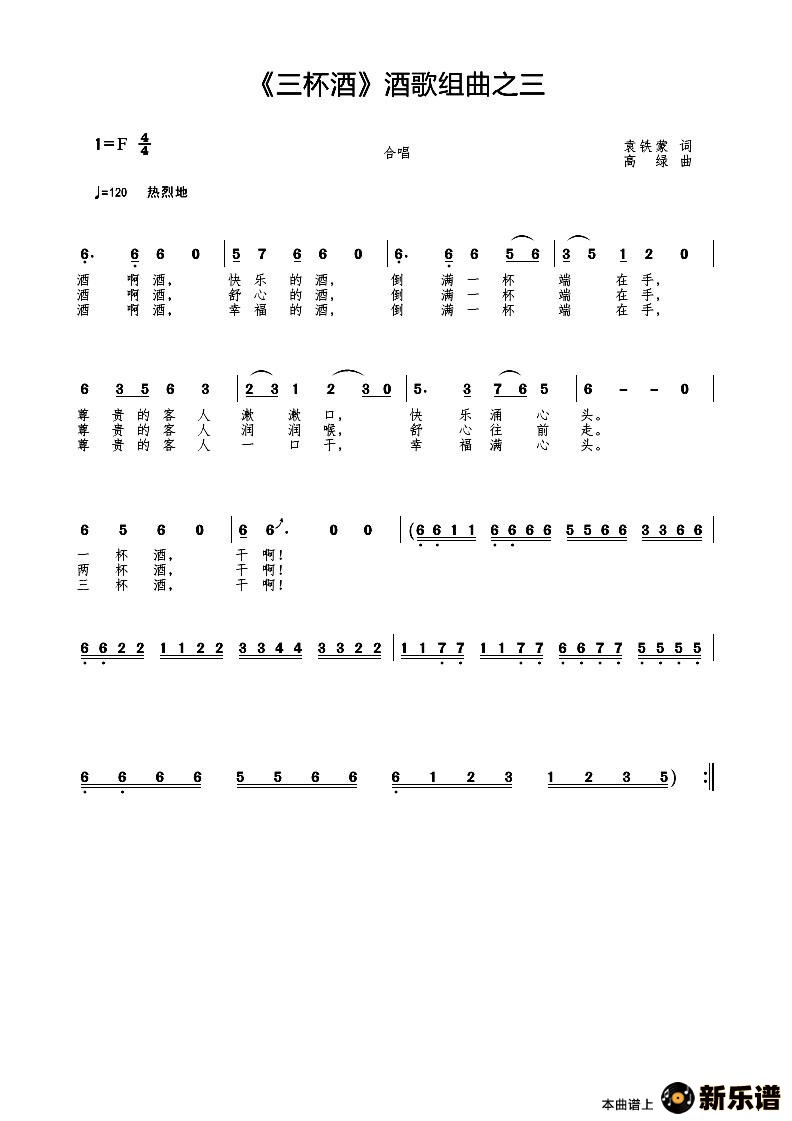 > 三杯酒简谱