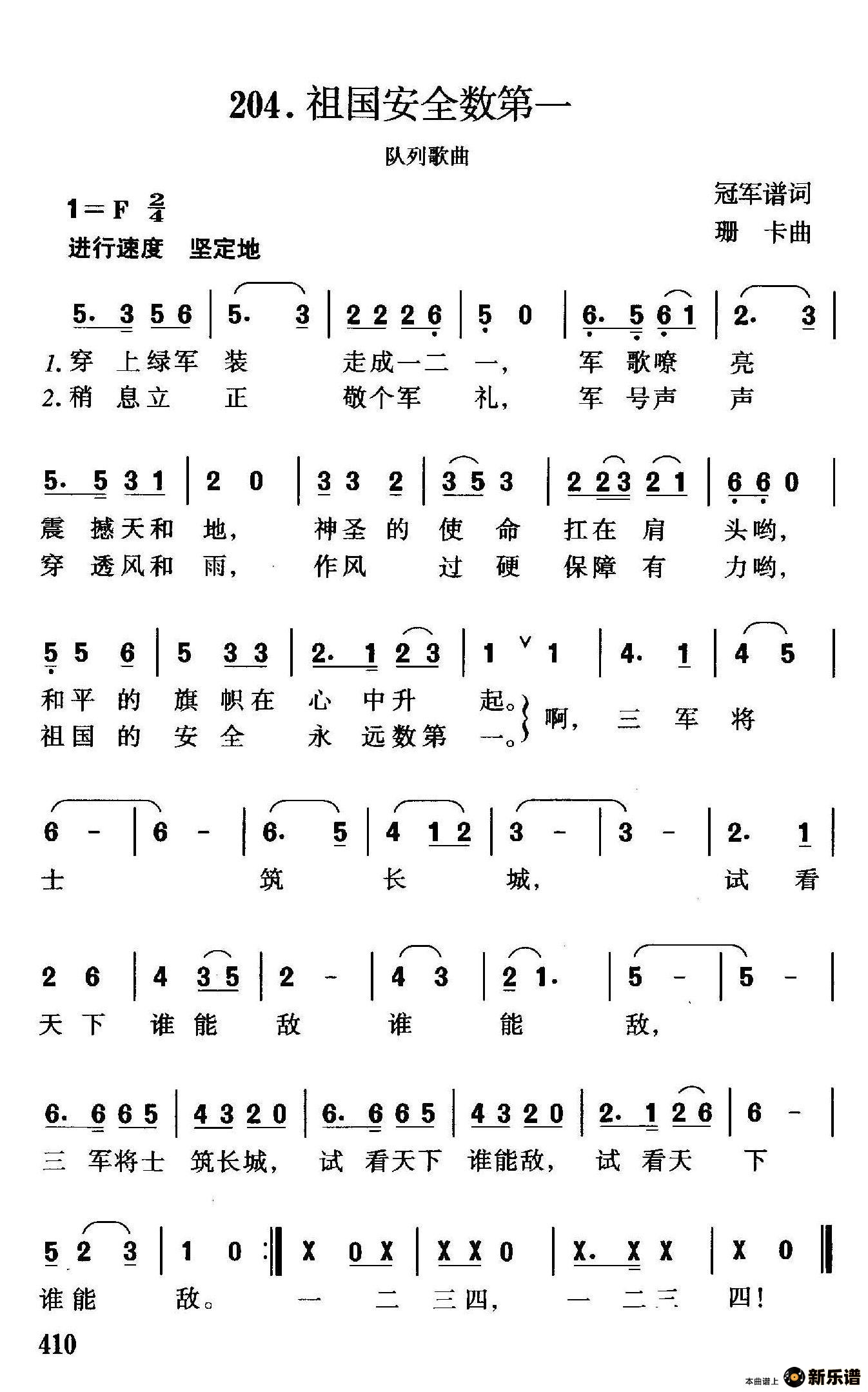 演唱的祖国安全数第一歌词,祖国安全数第一简谱.