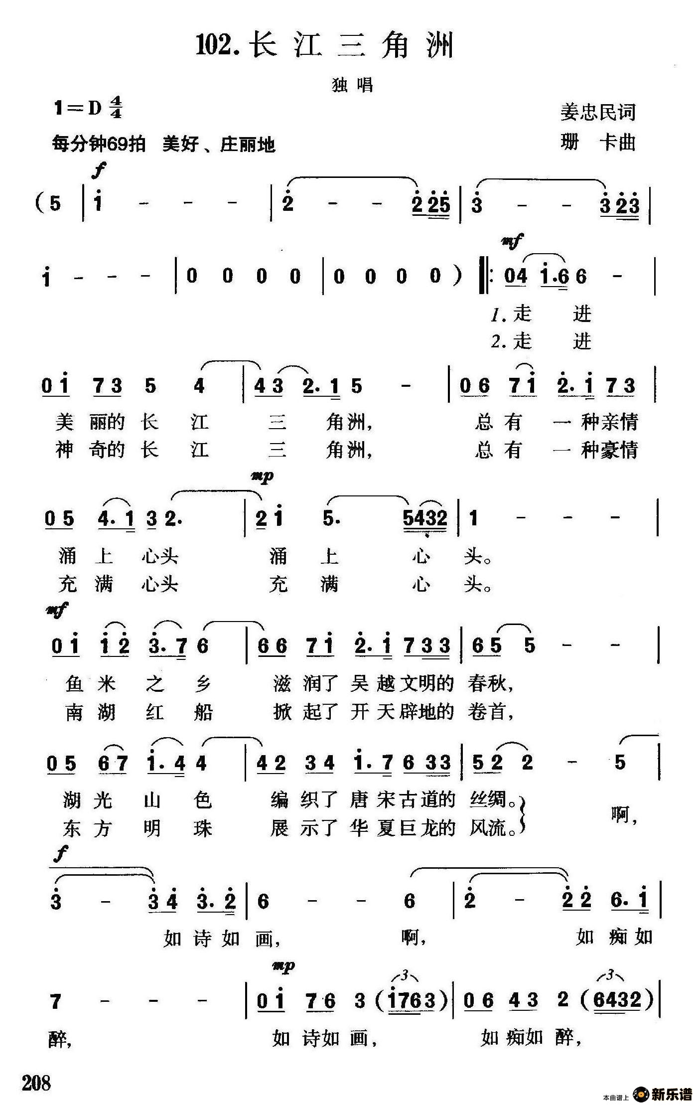 演唱的长江三角洲歌词,长江三角洲简谱.