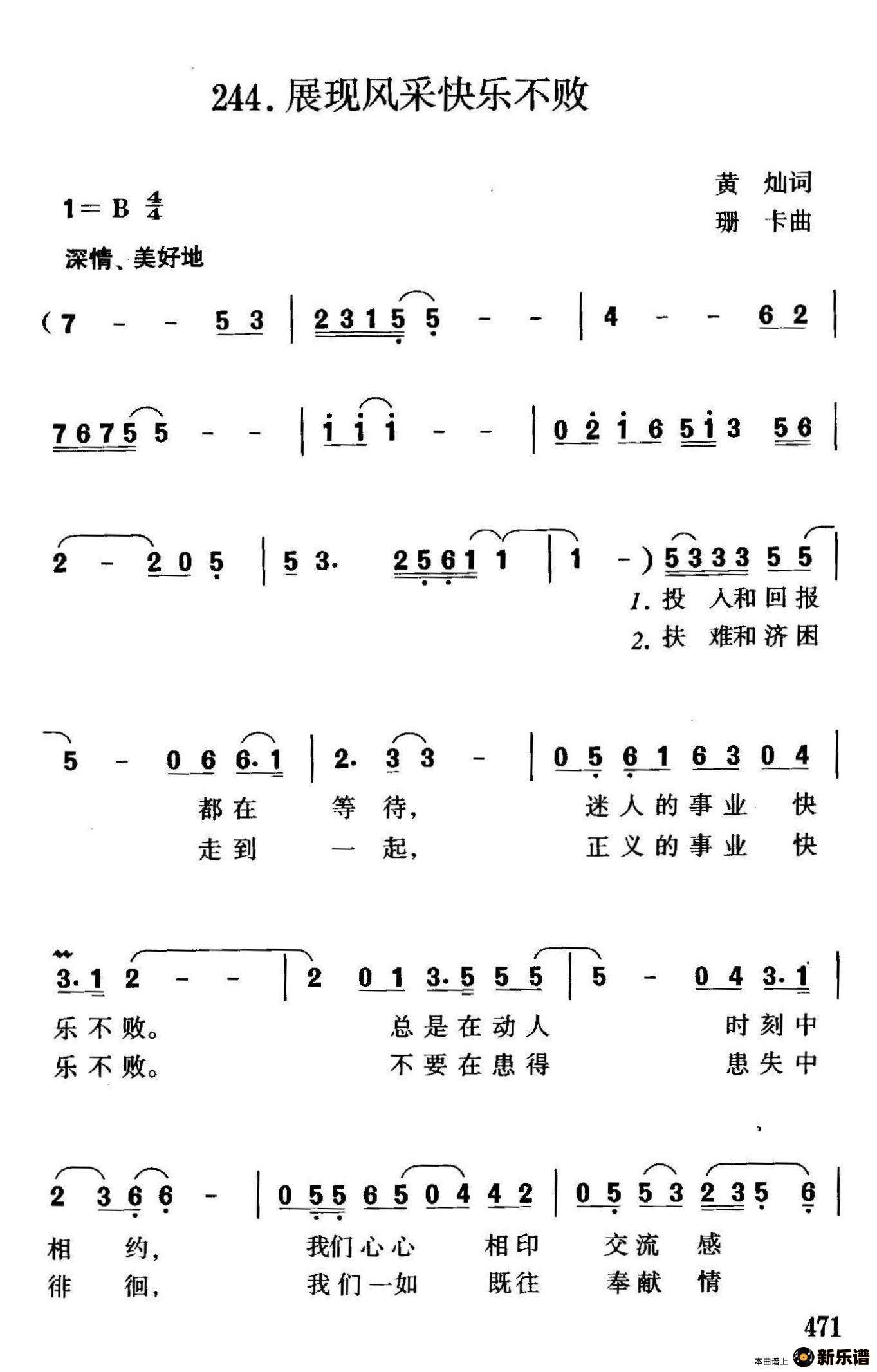 演唱的展现风采快乐不败歌词,展现风采快乐不败简谱.