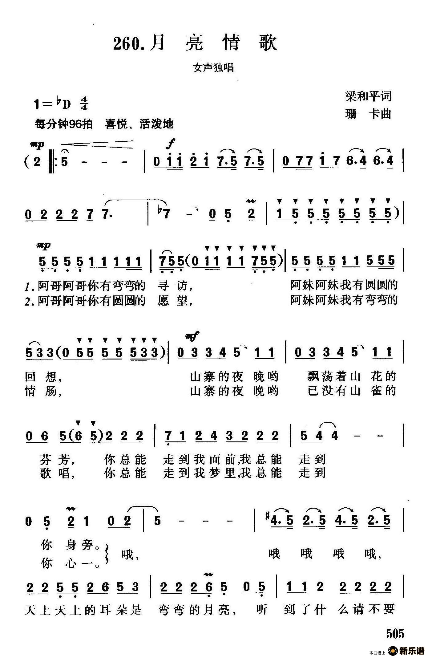 演唱的月亮情歌歌词,月亮情歌简谱.