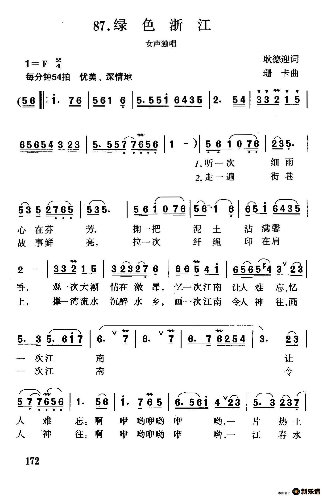 演唱的绿色浙江歌词,绿色浙江简谱.