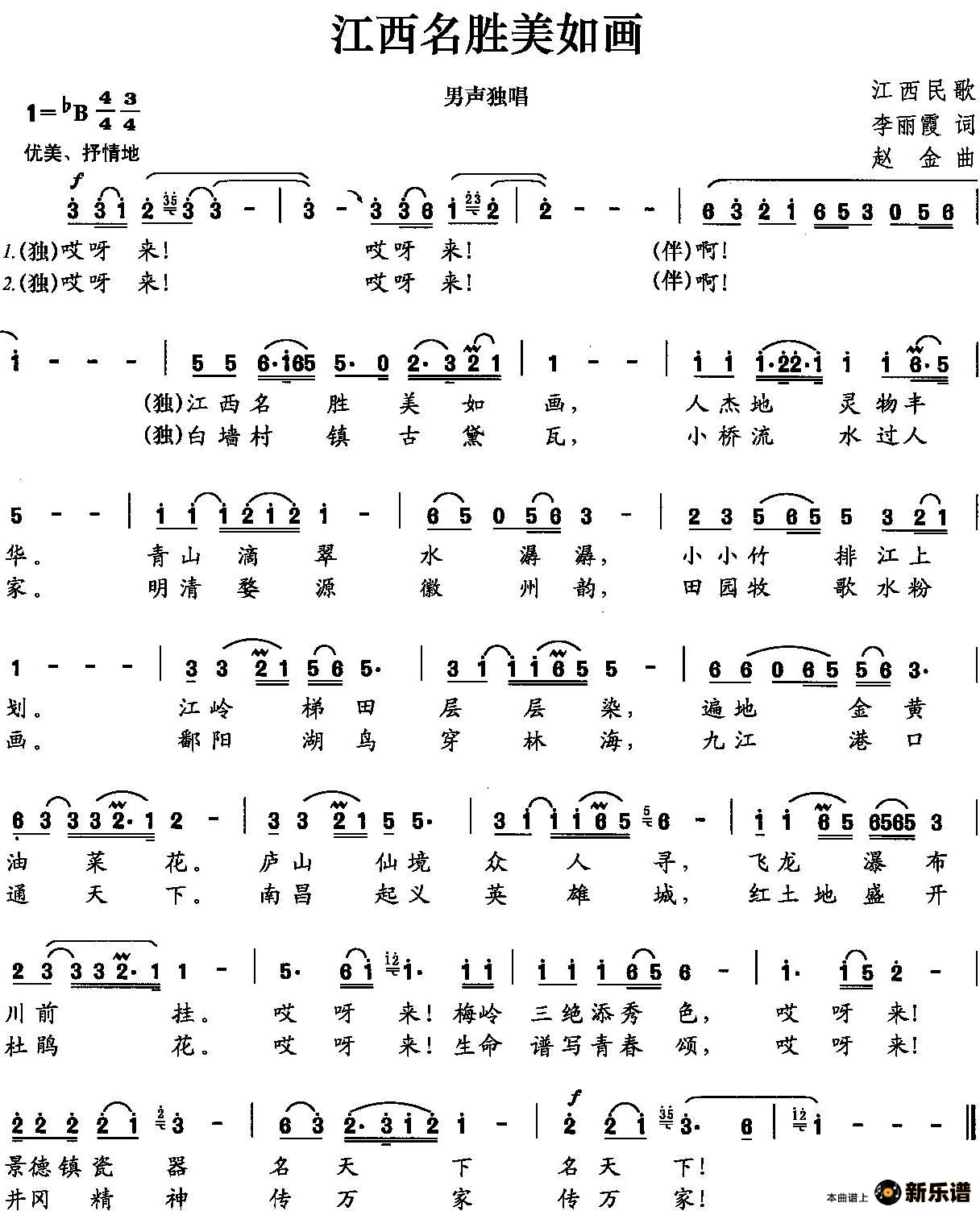 演唱的江西名胜美如画歌词,江西名胜美如画简谱.