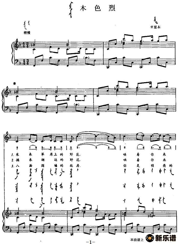 演唱的木色烈(蒙古文)歌词,木色烈(蒙古文)简谱.