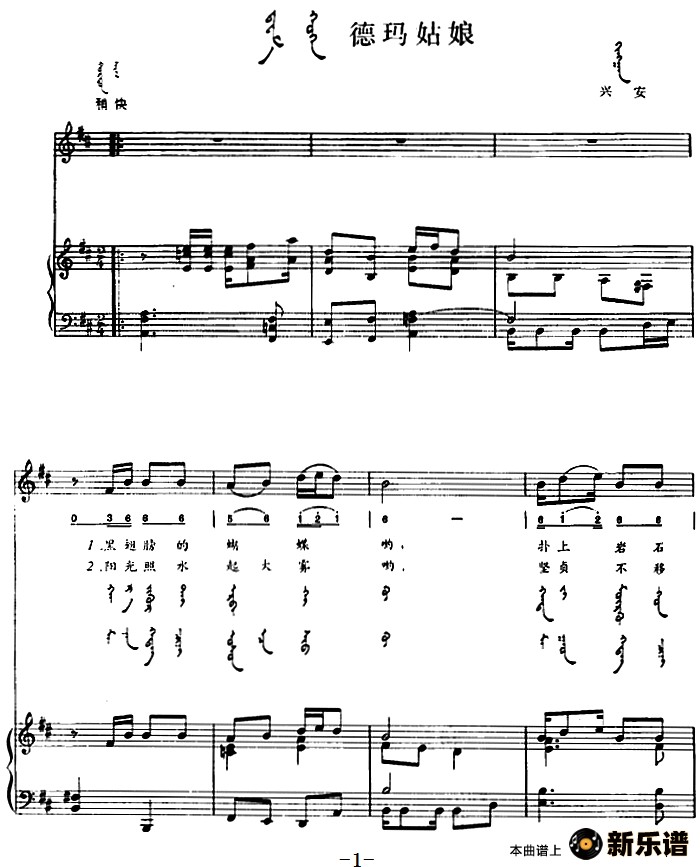 演唱的德玛姑娘(蒙古文)歌词,德玛姑娘(蒙古文)简谱.