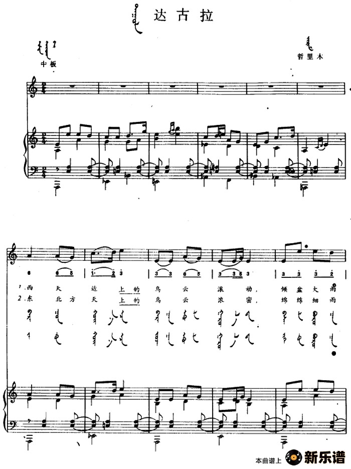 演唱的达古拉(蒙古文)歌词,达古拉(蒙古文)简谱.
