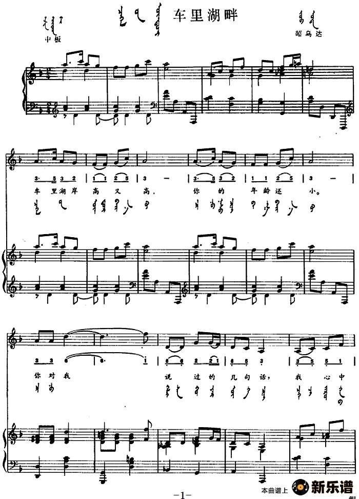 演唱的车里湖畔(蒙古文)歌词,车里湖畔(蒙古文)简谱.