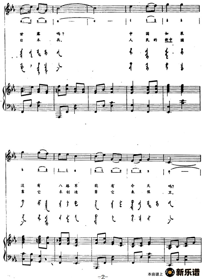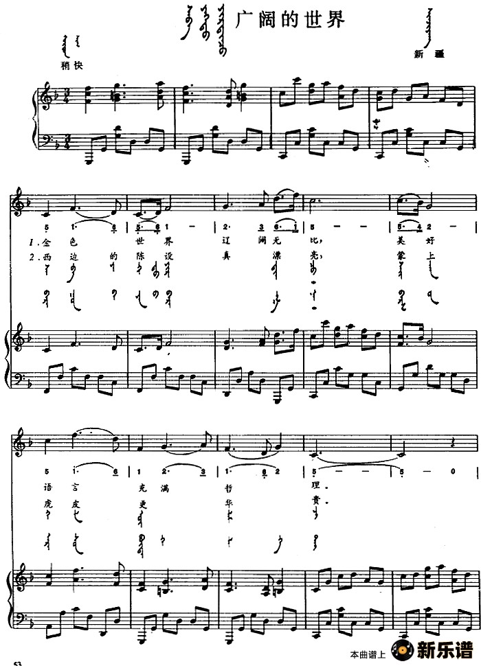 > 广阔的世界(蒙古文)简谱