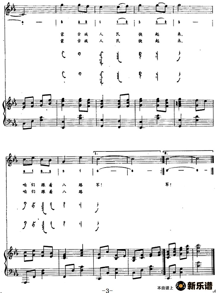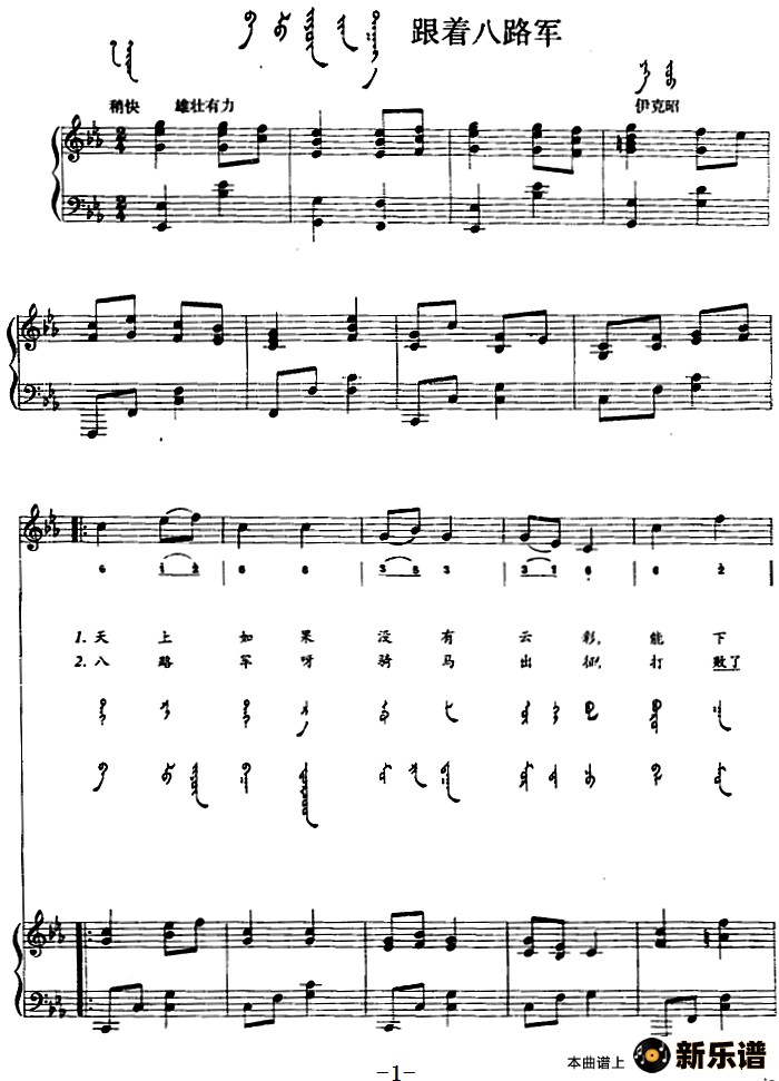 演唱的跟着八路军(蒙古文)歌词,跟着八路军(蒙古文)简谱.