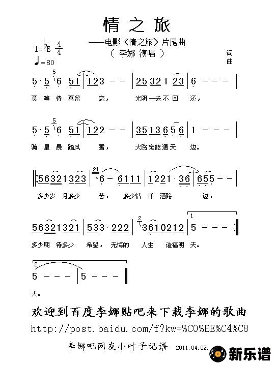 《情之旅(电影《情之旅》片尾曲)》简谱 李娜-小叶子制谱