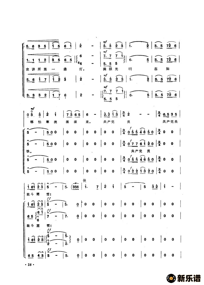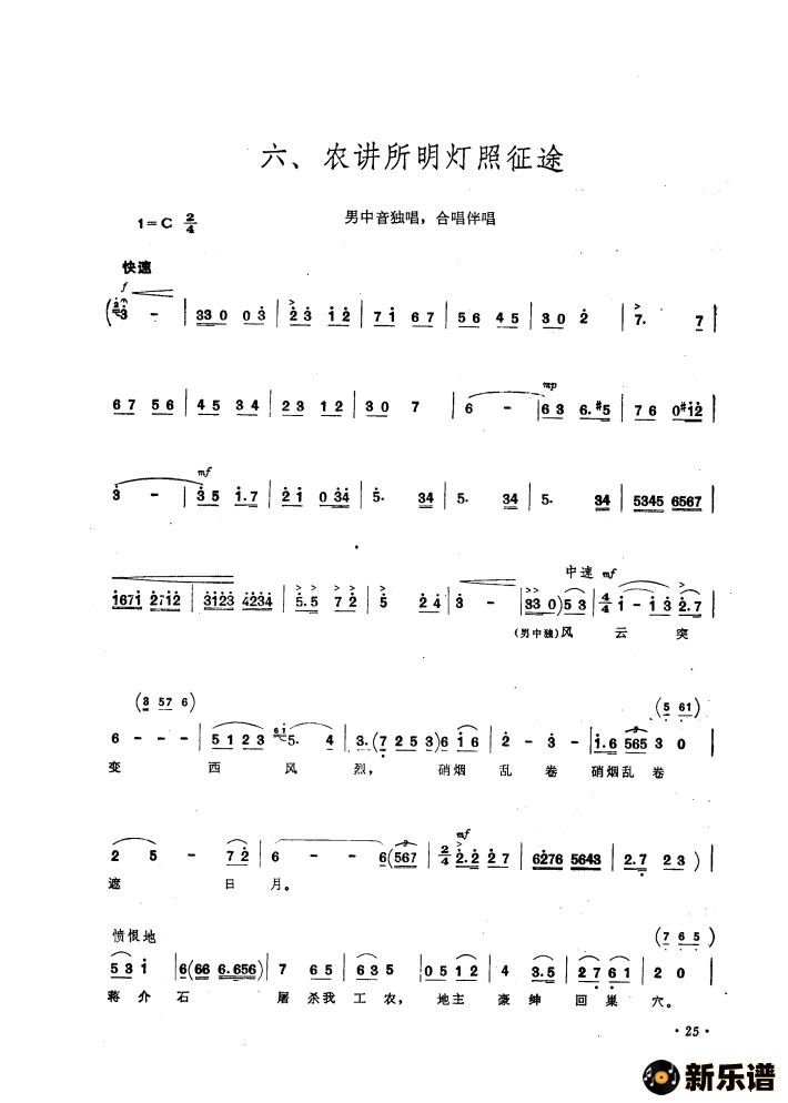 《农讲所明灯照征途(独唱、合唱)》简谱 谢长庆、广东省歌舞团
