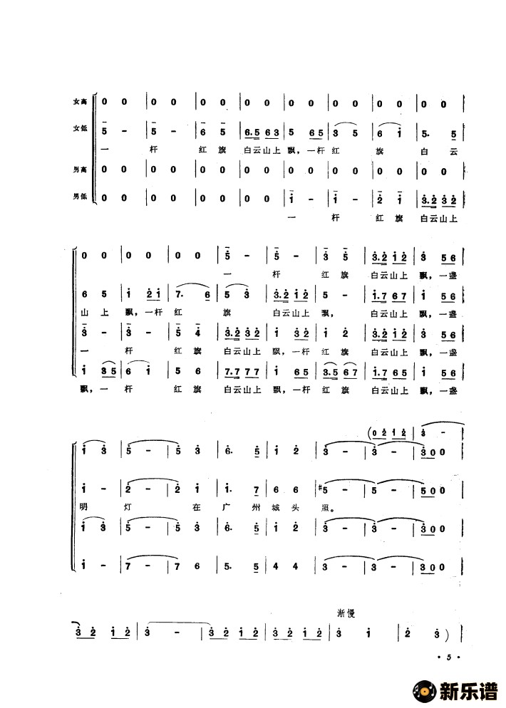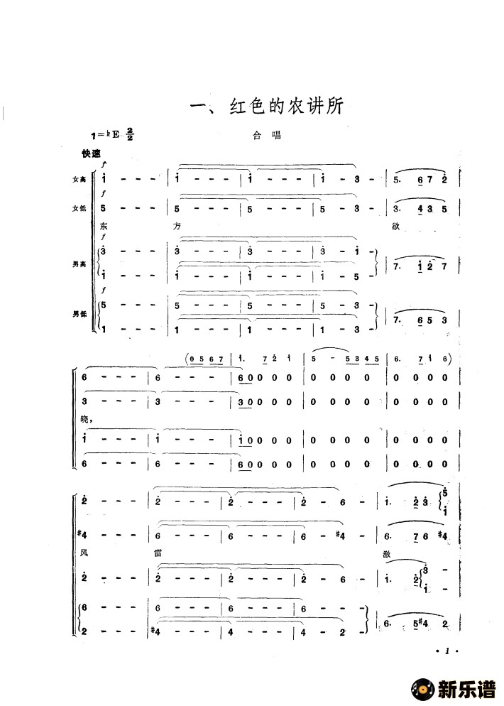 《红色的农讲所(合唱)》简谱 广东省歌舞团