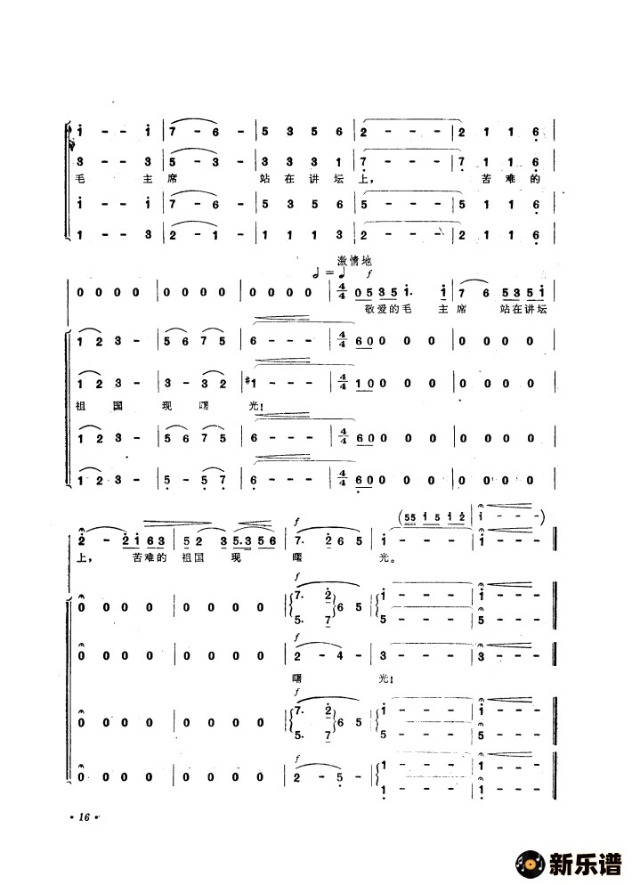 > 毛主席站在讲坛上(独唱、合唱)简谱