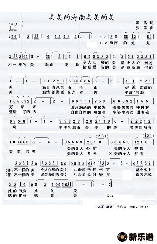 演唱的美美的海南美美的美歌词,美美的海南美美的美简谱.