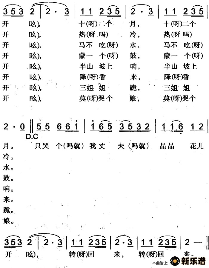 > 一根谷草十二个节(木垒回族民歌)简谱