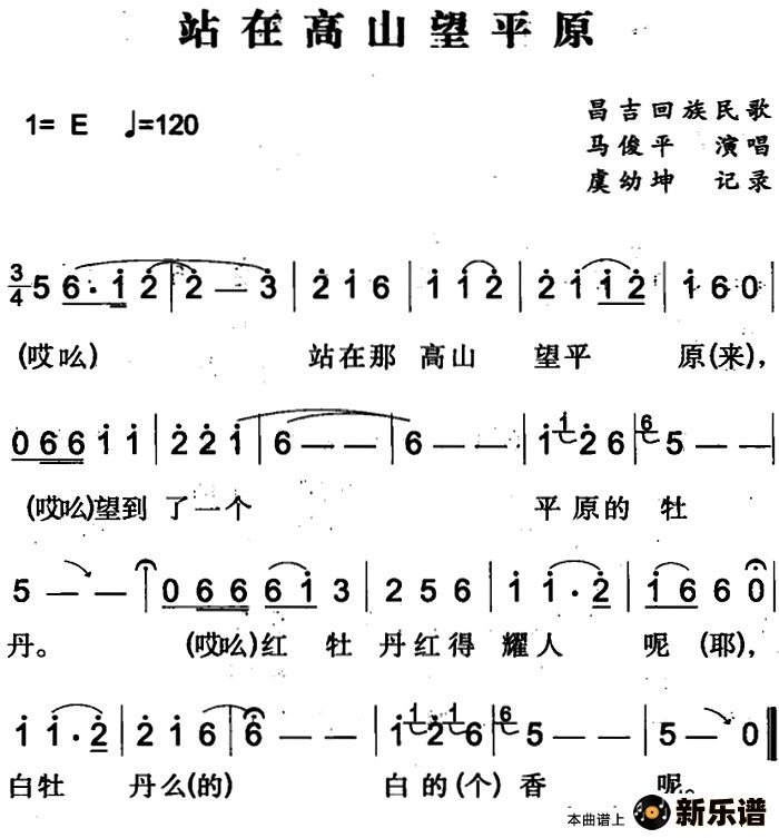《站在高山望平原(昌吉回族民歌)》简谱 马俊平