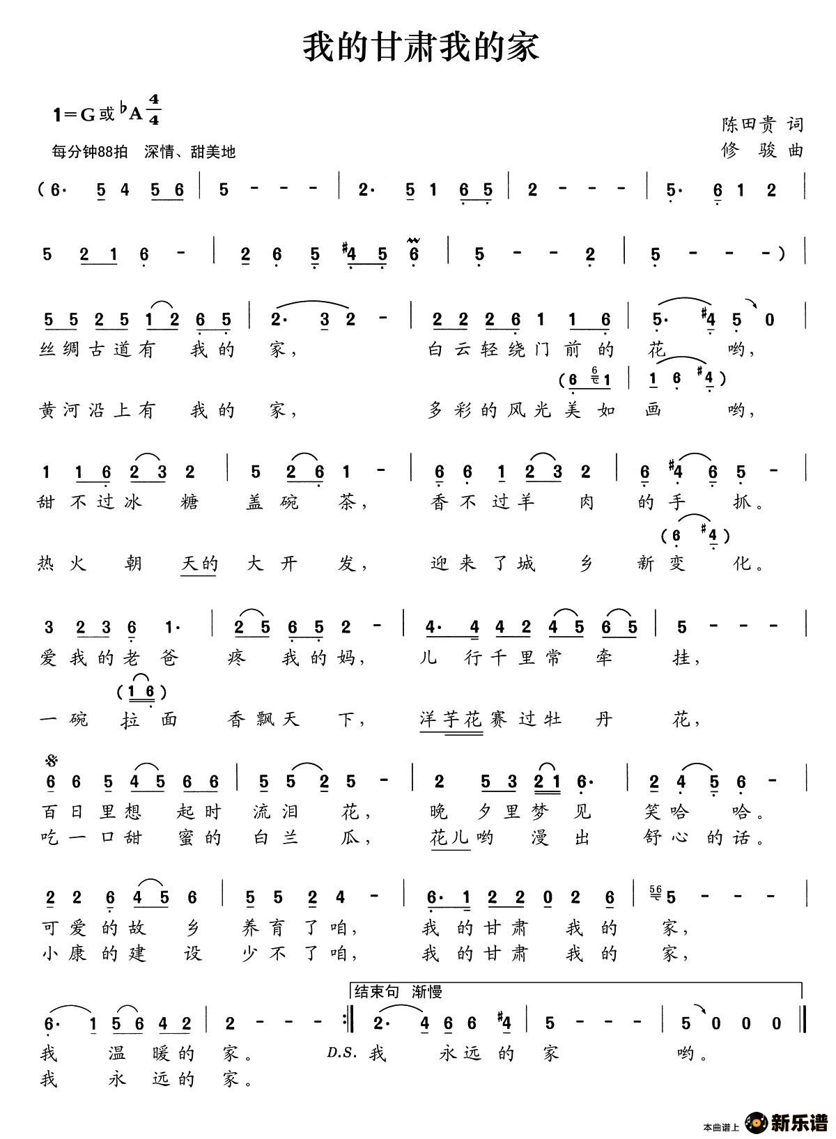 演唱的我的甘肃我的家歌词,我的甘肃我的家简谱.