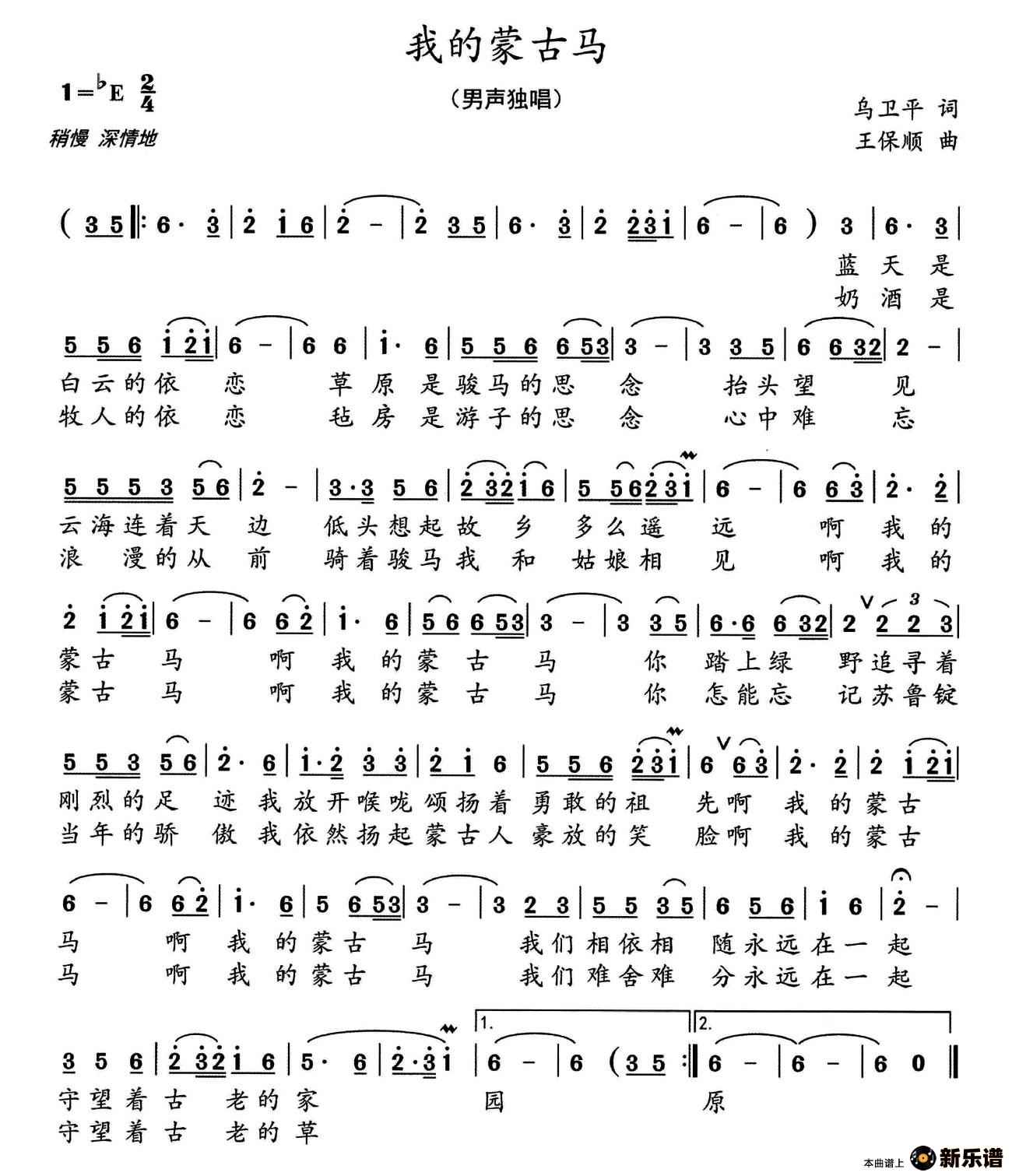 演唱的我的蒙古马歌词,我的蒙古马简谱.