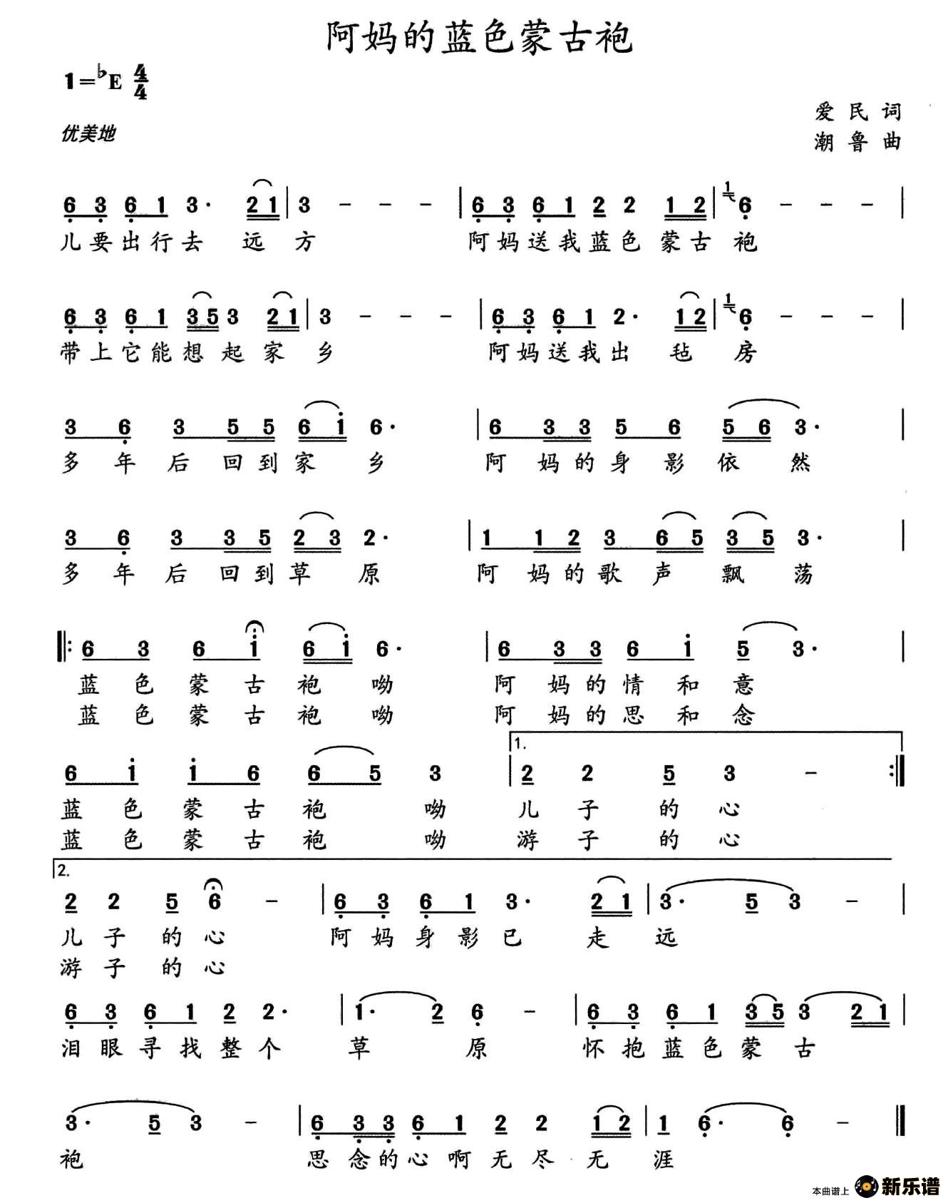 《阿妈的蓝色蒙古袍》简谱