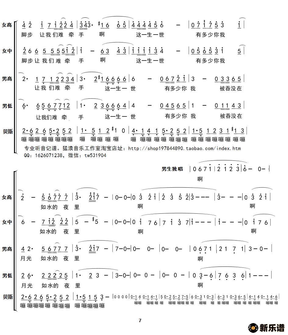 《贝加尔湖畔四声部合唱谱》简谱 李健第7张