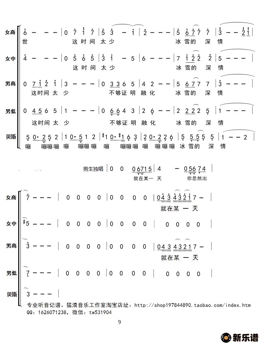 《贝加尔湖畔四声部合唱谱》简谱 李健第9张