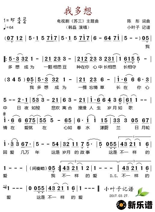 《我多想(电视剧《苏三》主题曲)》简谱 韩磊-小叶子制谱