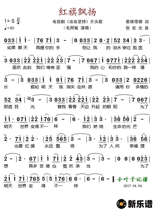 《红旗飘扬(电视剧《浴血坚持》片头歌)》简谱 毛阿敏-小叶子制谱