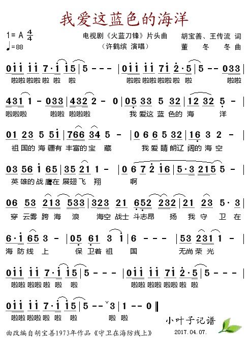 《我爱这蓝色的海洋(电视剧《火蓝刀锋》片头曲)》简谱 许鹤缤-小叶子制谱