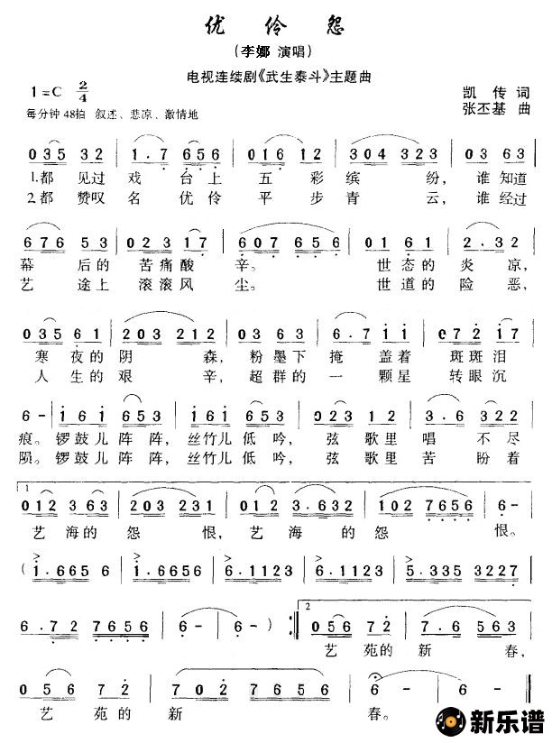 李娜演唱的优伶怨(电视剧《武生泰斗》主题曲)歌词,优伶怨(电视剧《武生泰斗》主题曲)简谱.