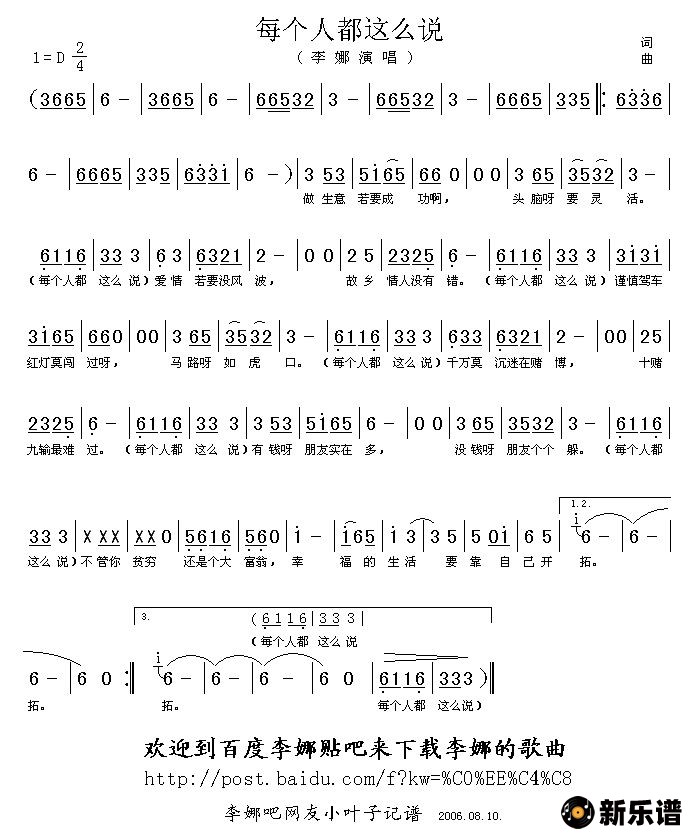 李娜演唱的每个人都这么说歌词,每个人都这么说简谱.
