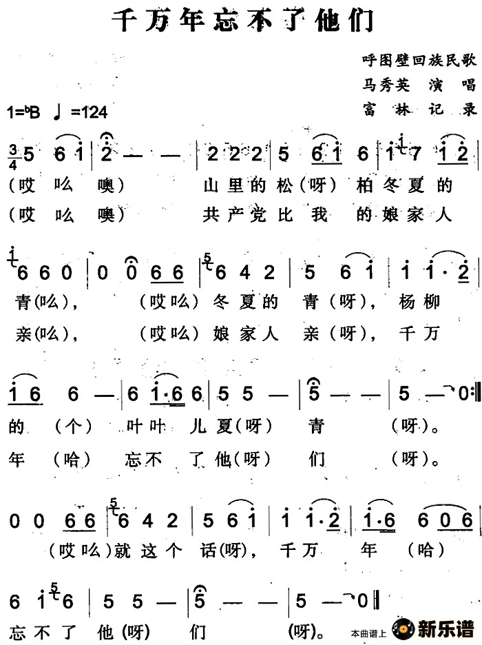 演唱的千万年忘不了他们歌词,千万年忘不了他们简谱.