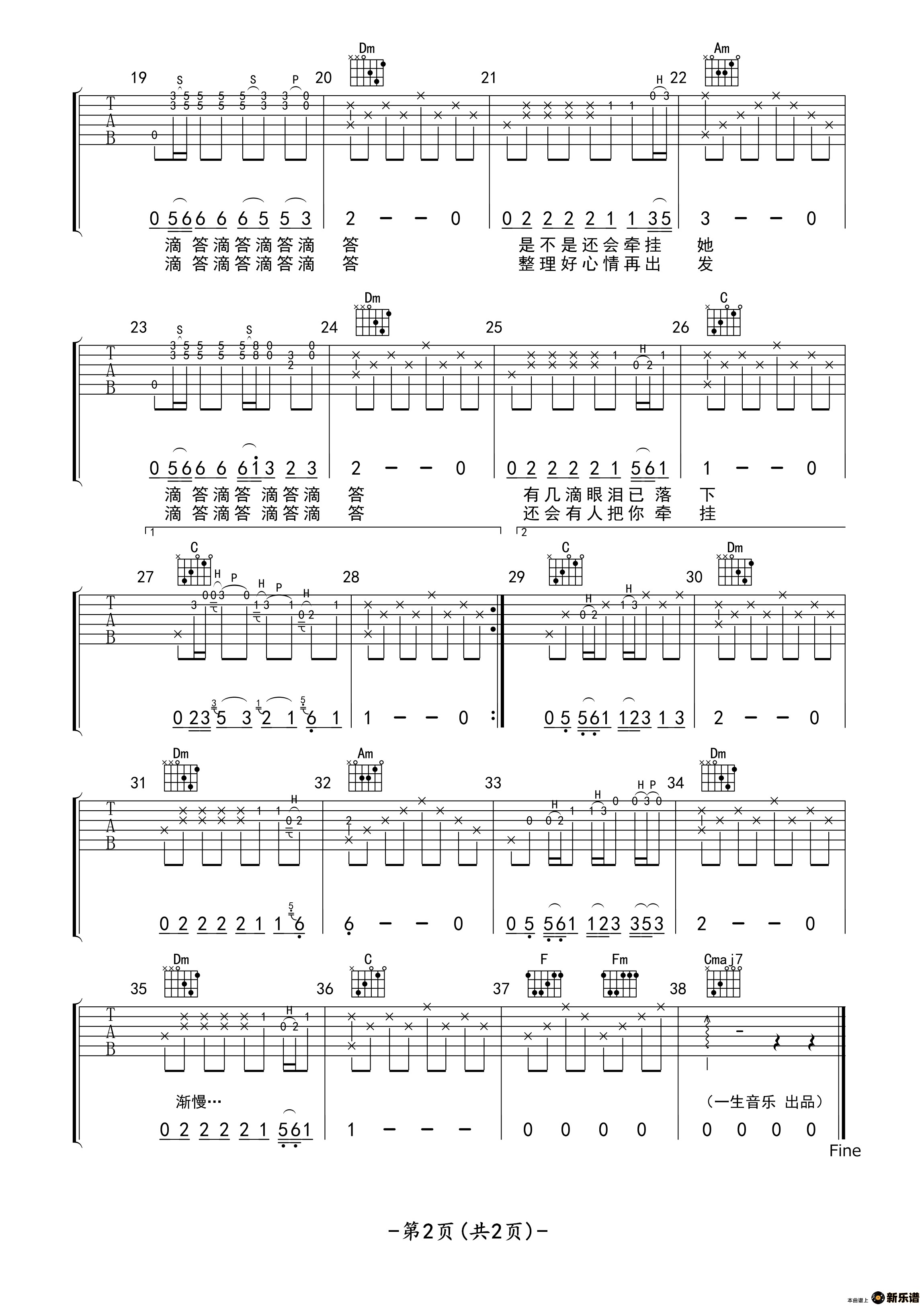 嘀嗒(电视剧《北京爱情故事》插曲、吉他谱)吉他谱