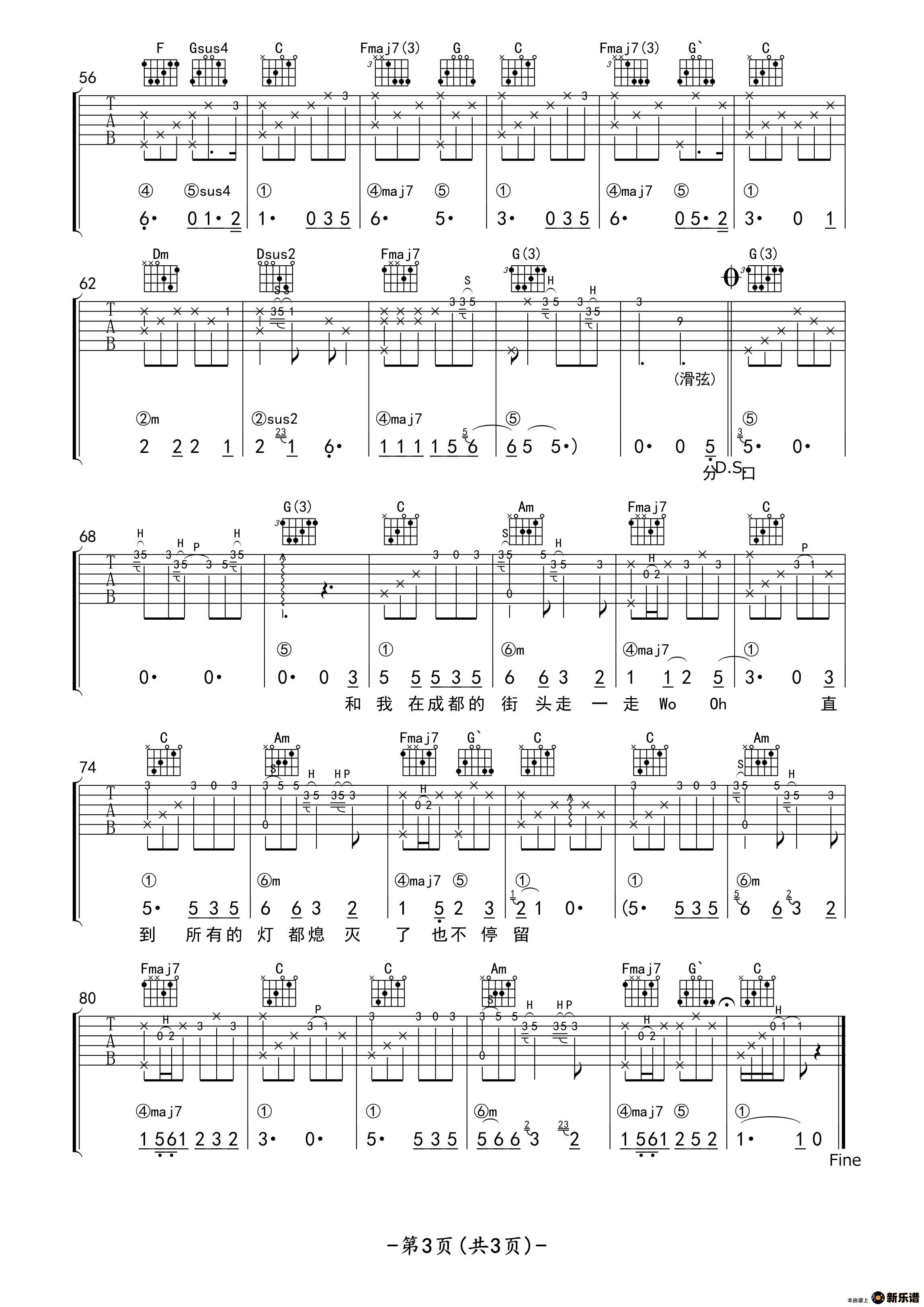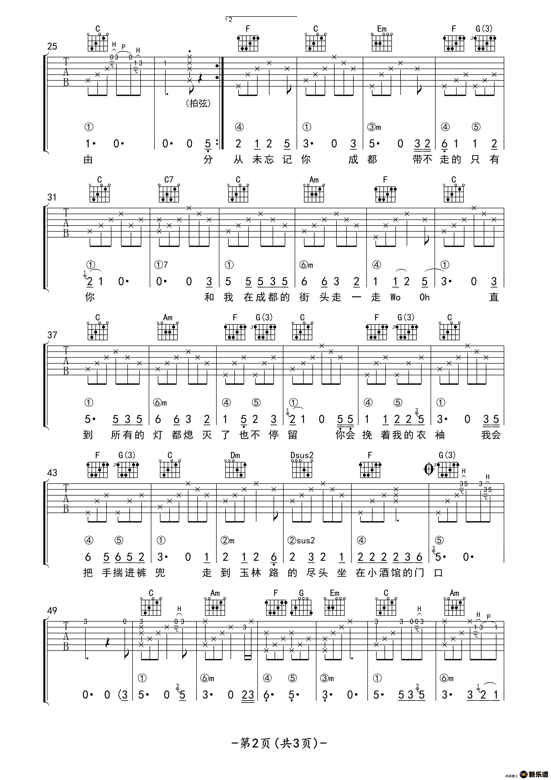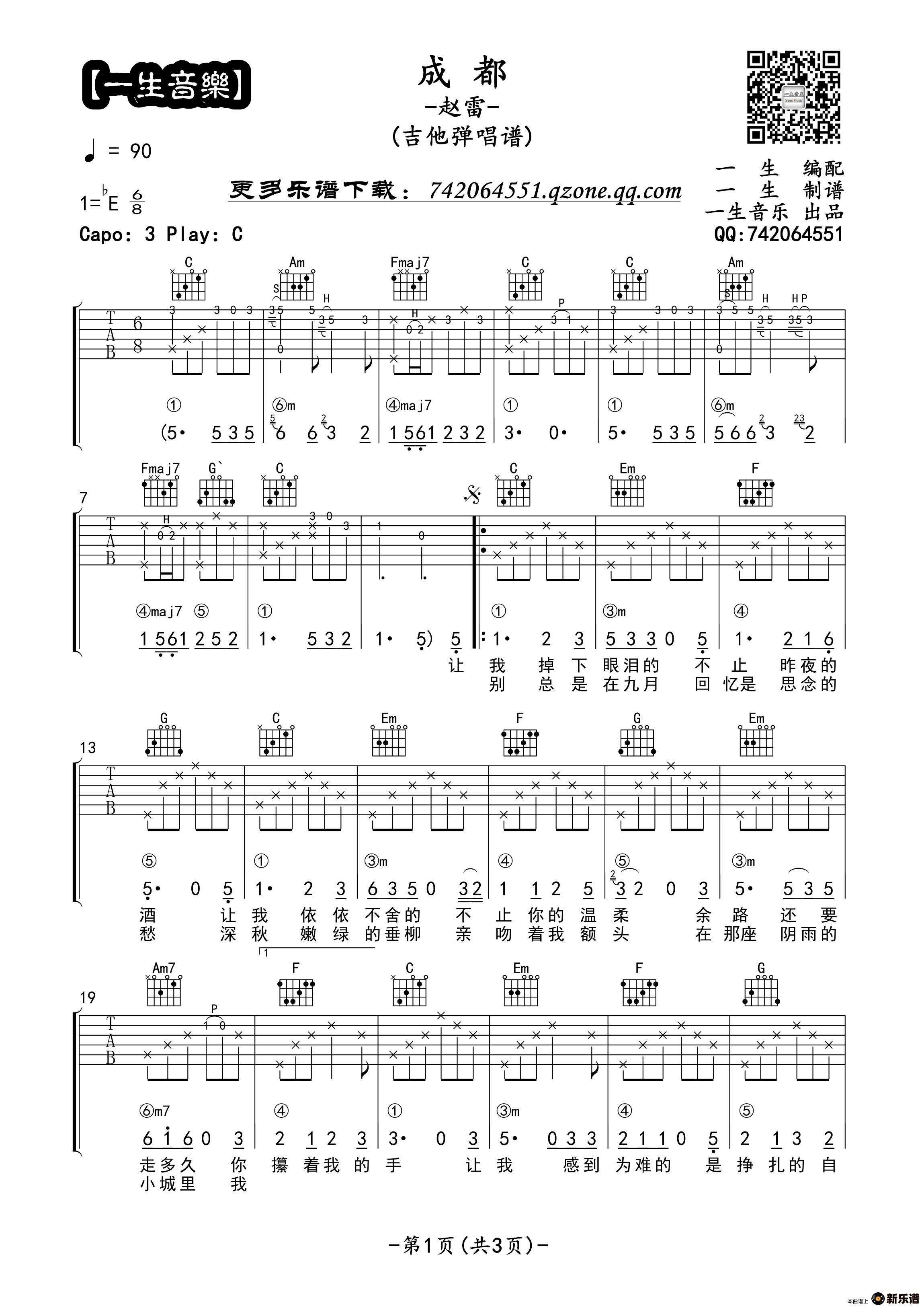 赵雷演唱的成都(一生音乐编配版)歌词,成都(一生音乐编配版)简谱.