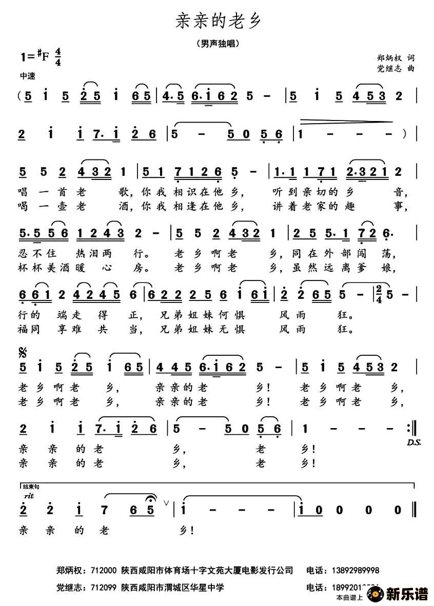 演唱的亲亲的老乡歌词,亲亲的老乡简谱.
