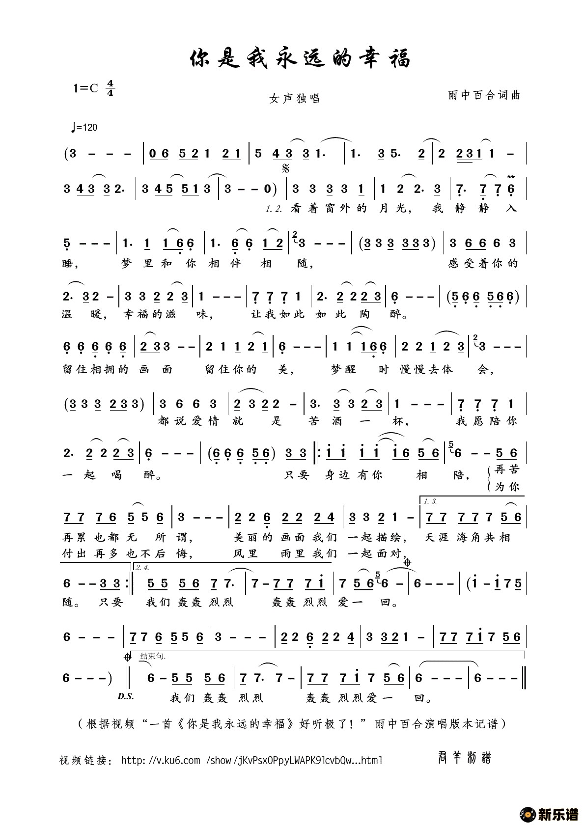 雨中百合演唱的你是我永远的幸福歌词,你是我永远的幸福简谱.