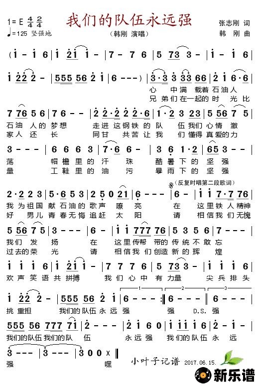 《我们的队伍永远强》简谱 韩刚-小叶子制谱