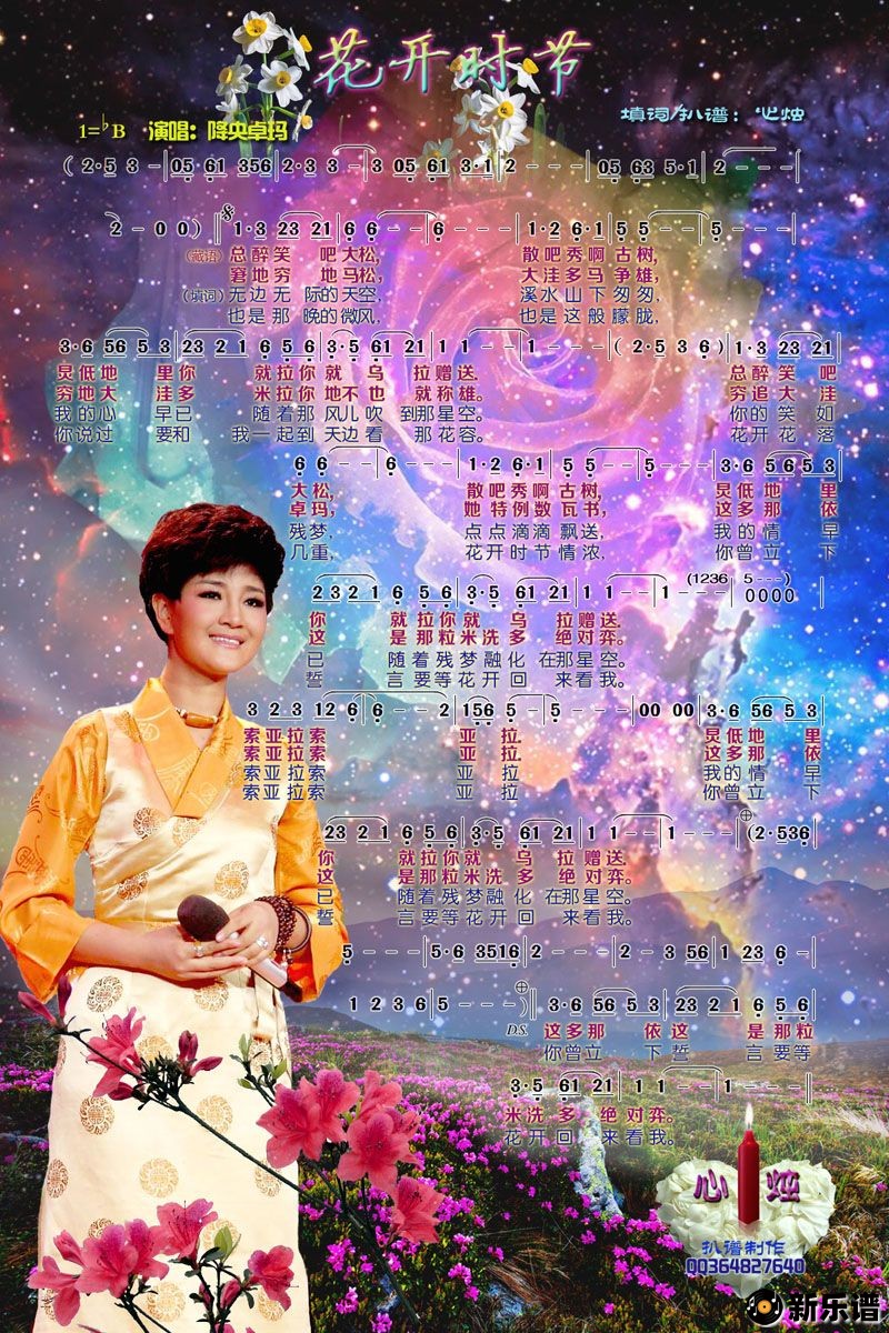 降央卓玛演唱的花开时节歌词,花开时节简谱.