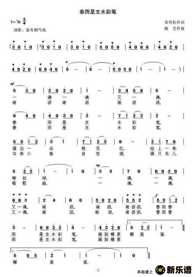 演唱的春雨是支水彩笔歌词,春雨是支水彩笔简谱.