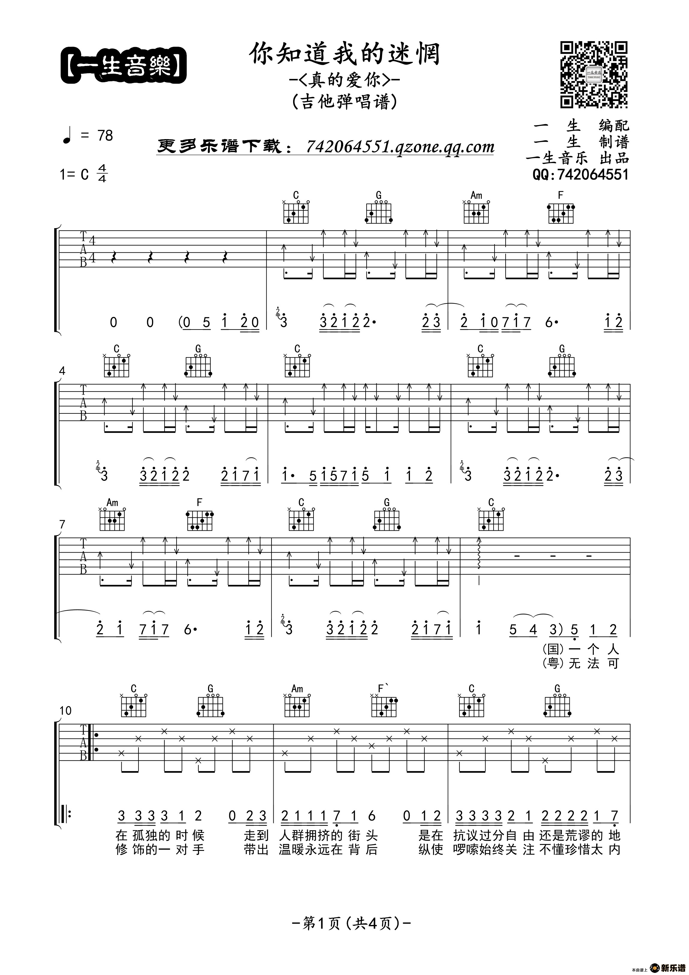 > 你知道我的迷惘(一生音乐编配版)简谱