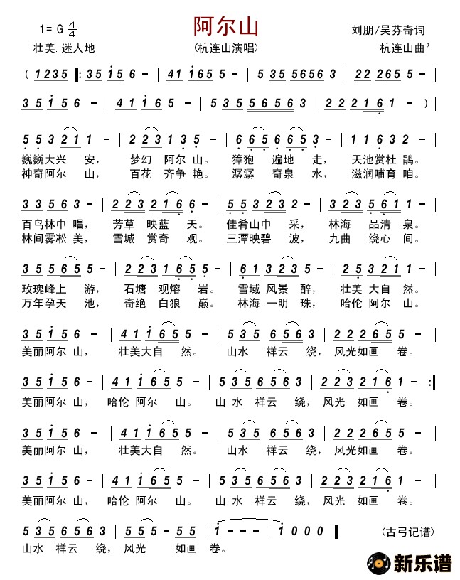 杭连山演唱的阿尔山歌词,阿尔山简谱.